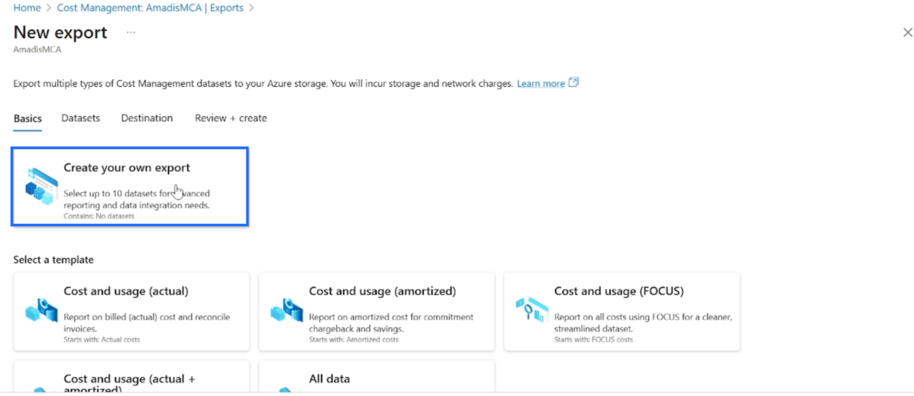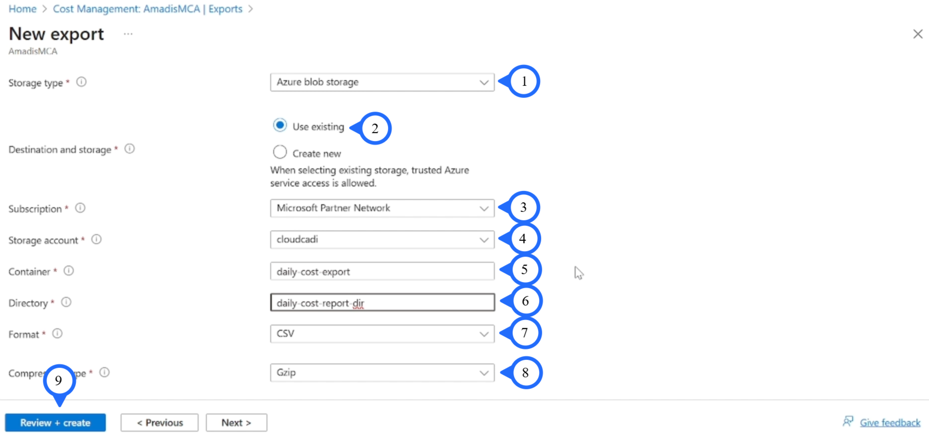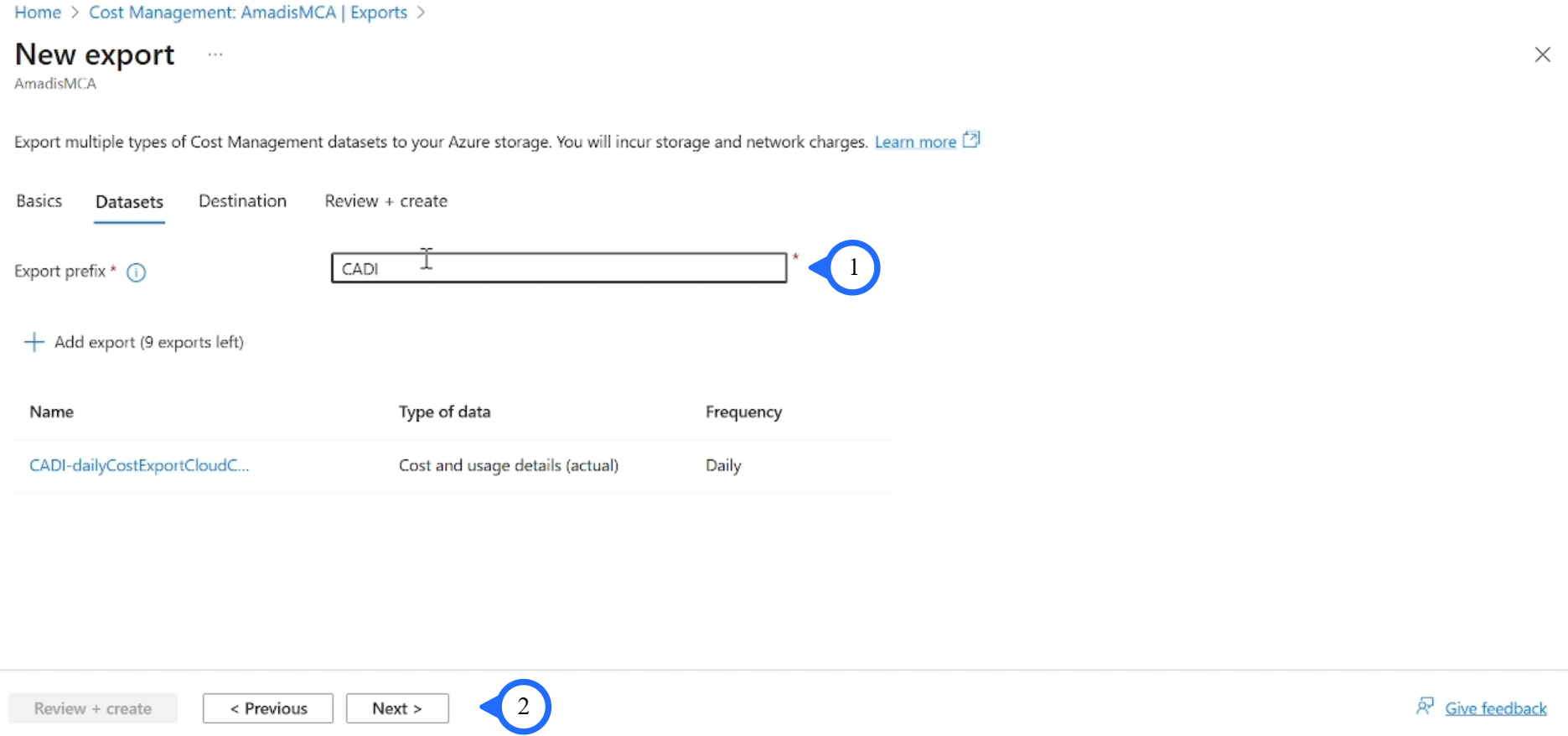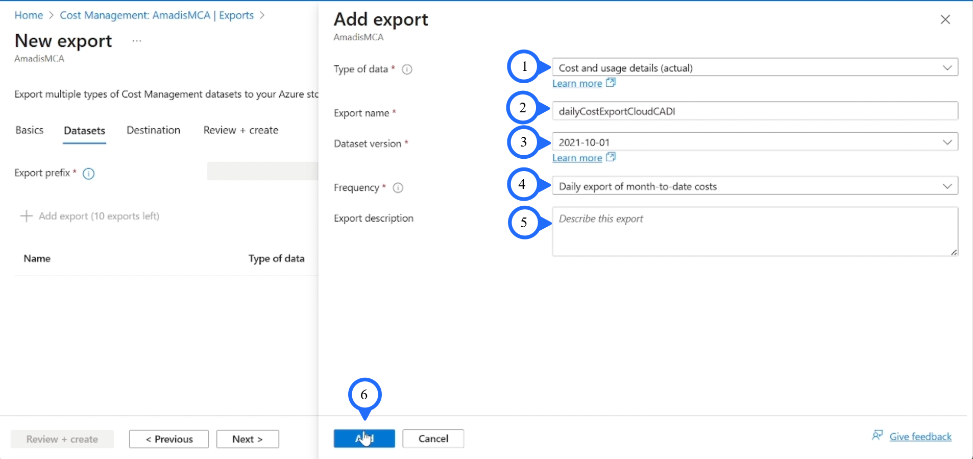 Step 4: Frequency: "Daily export of month-to-date costs".